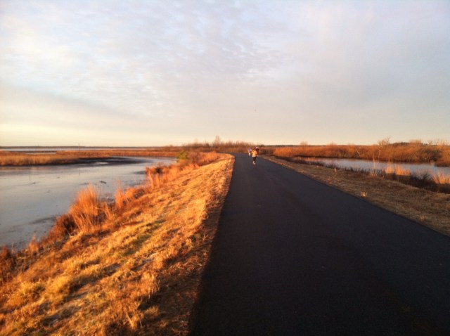 The race started at 7am and so when we arrived at 6:15 we had some time to spare. It was in the low 40’s but wearing extra clothes would be a pain for later in the race, so we just suffered for a while. We used the restroom and then waited.