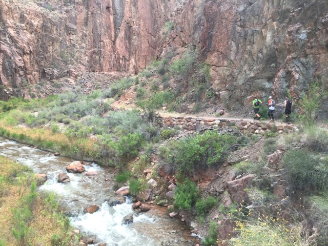Fresh legs at the beginning of a race is normal and it takes a lot to slow down at the beginning of a race. I ran with Gabe and Jordan down the hill. We passed Green Cove at mile 3.4 and Creek Junction at mile 6.7 talking and laughing and meeting a bunch of members of The Yeti Army. It was about this time that someone told us it was wise to walk the trestles and run in between. I like that since there was not a lot of elevation gain, less than 4000’ total.
